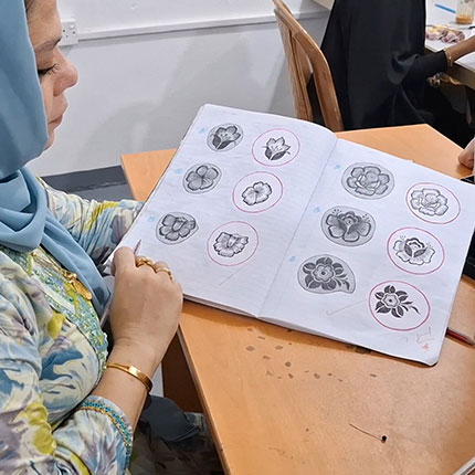 Since 2023, we have been offering art courses like mehndi, fabric painting, and mirror painting to help women gain skills for self-employment. Our goal is to provide practical training along with Islamic values, so they can earn a living while staying connected to their faith. Through these courses, we aim to help women grow their talents and build a strong foundation in both skills and values.